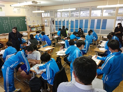 本日、宇河地区道徳科部会の研究授業が2年3組で行われました。