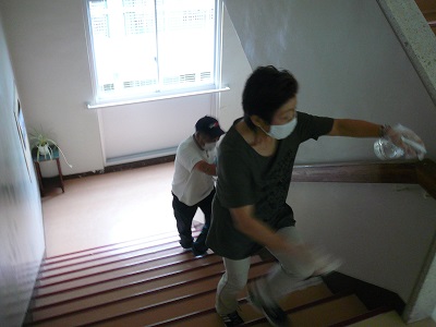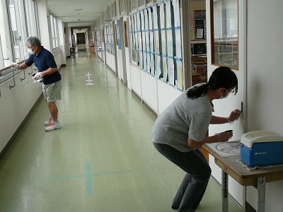 本日放課後も地域の方々がお見えになって、ドアや手すり、水道などの消毒作業を行ってくださいました。