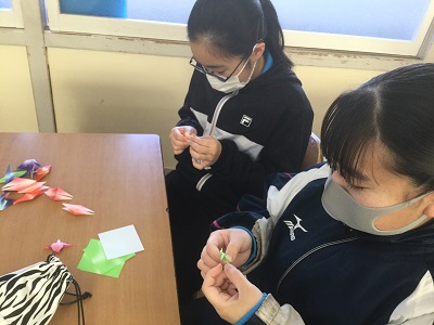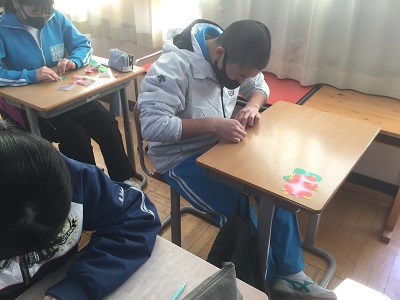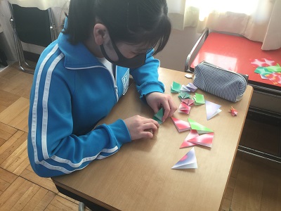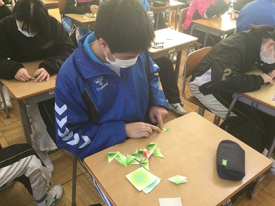 2月5日(金)、3年生が総合的な学習の時間に折り紙を行い、鶴と亀を折りました。