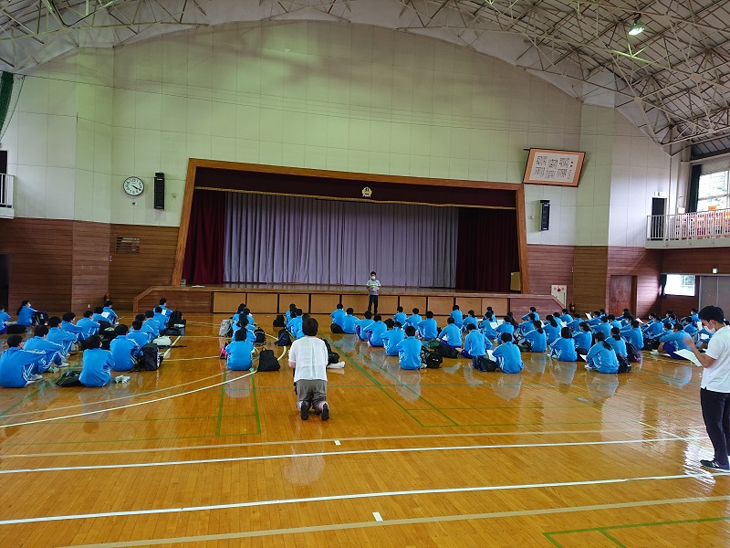 あいにくの空模様ですが、生徒は元気に登校しています。