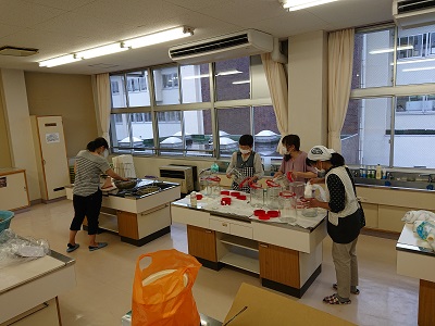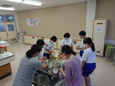 昨日、学校支援コーディネーターの方とボランティアの方々のご協力で梅ジュースつくりを行いました。
