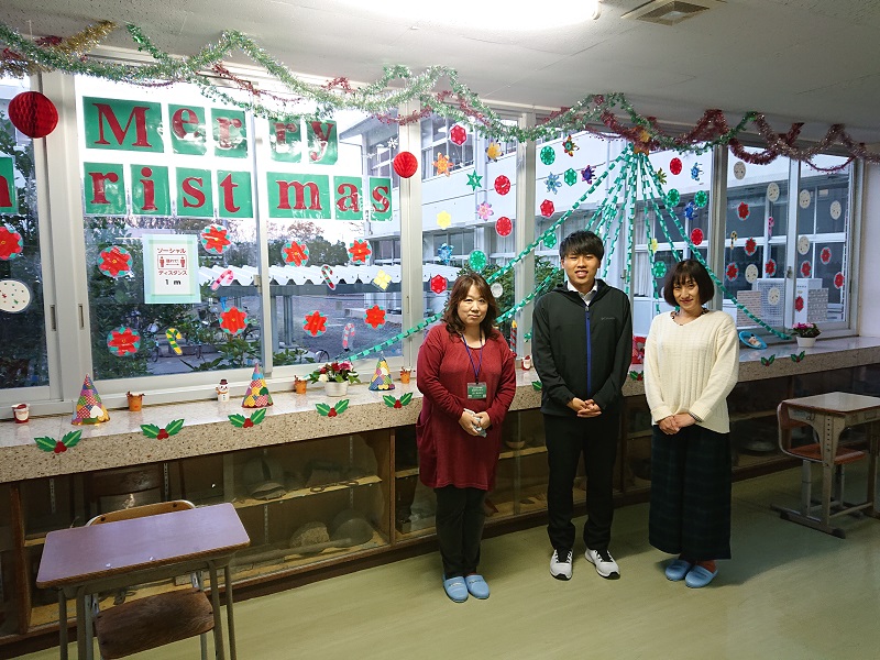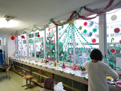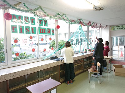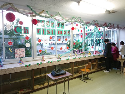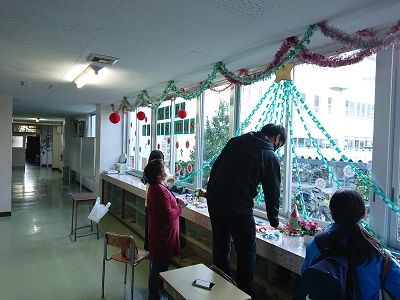 本日、図書ボランティアの方々が昇降口にクリスマスの飾り付けを行ってくださいました。