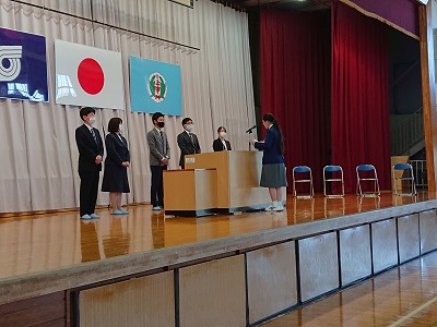 4月15日(木)、5名の先生方にお越しいただき、離任式が行われました。