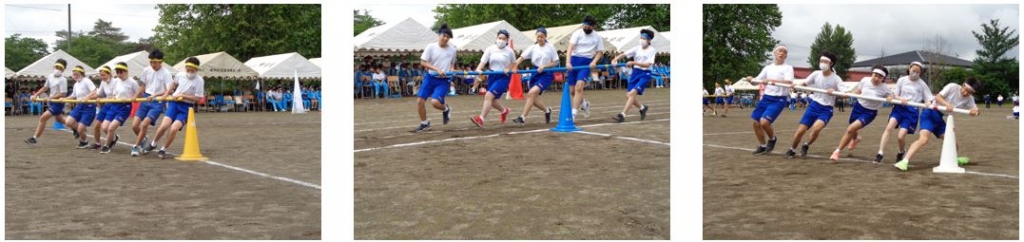 放送機器のトラブルから、ラジオ体操の音楽が途切れてしまいましたが、生徒の間からは「いち、にい、さん、し・・・」と号令の声が沸き上がり、臨機応変な対応をする場面も見られました。予行とはいえ真剣そのものの競技が行われ、大きな声援も校庭に響いていました。午後は天気も回復し、強い日差しの中、綱引き・タイヤ取りの前に行われるアピールタイムに向けた色別の打ち合わせも行われました(乞うご期待)。明日は準備、明後日が体育祭本番です!みなさんの活躍を期待しています‼