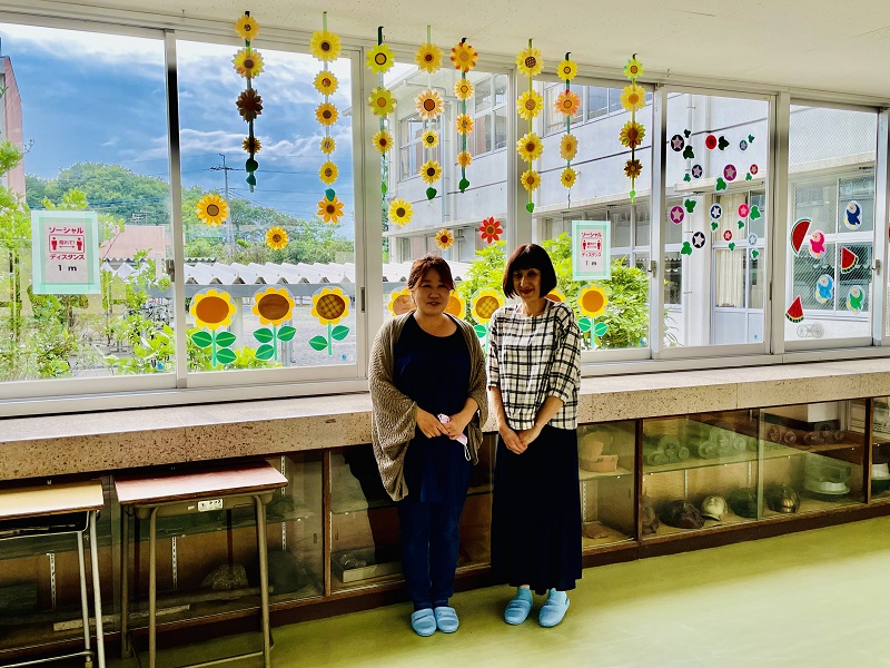 本日、図書ボランティアの方々が夏に向けた昇降口の飾り付けを行ってくださいました。