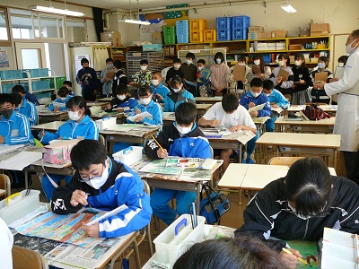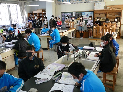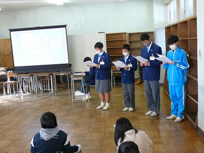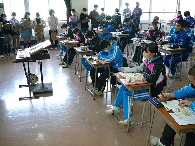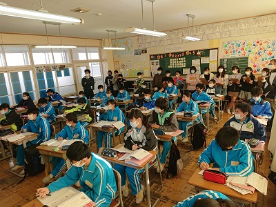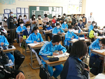 本日は、坂上小学校の6年生が中学校に来校し、授業の様子をみたり、先輩方の話を聞きました。