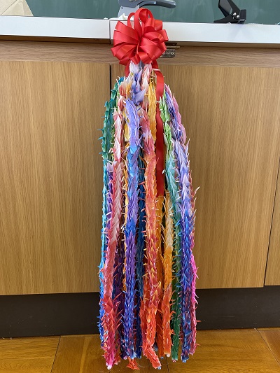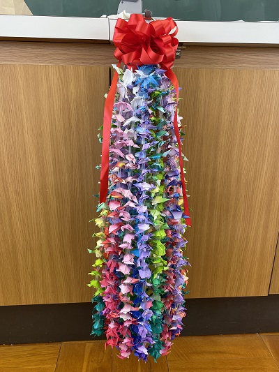 3年生が心を込めて折った折り紙の鶴と亀を千羽鶴・亀として、「自治医科大学附属病院」と「獨協医科大学病院」、「芳賀赤十字病院」に送りました。