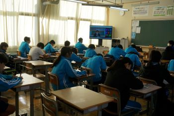 今日は、宇都宮市の光琳寺のご住職を講師に迎えて、町主催の人権文化講演会を行いました。感染症対策のため、3年生のみ体育館で、1・2年生は教室でリモートで講話を聞きました。