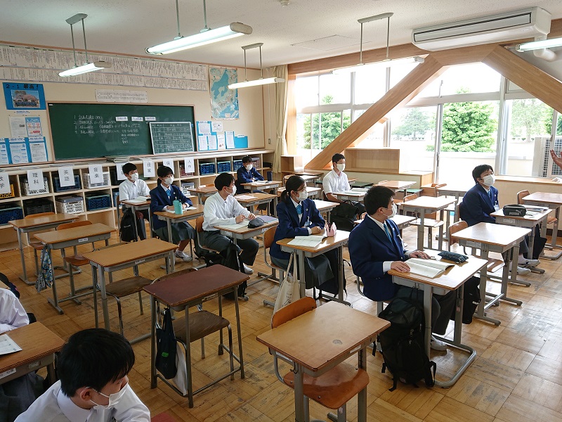 5月25日(月)、本日からクラスの半数の生徒の登校ですが、授業が始まりました。