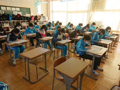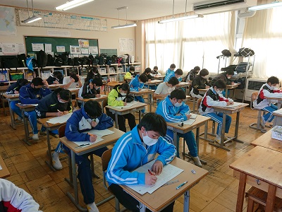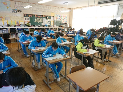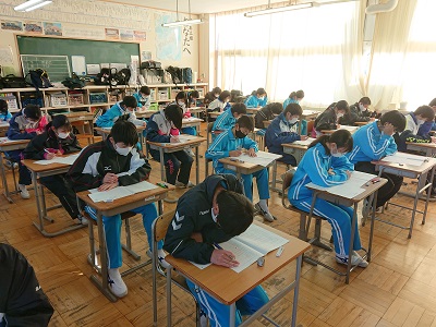 1月8日(金)、1・2年生が実力テストを行いました。真剣に取り組んでいました。