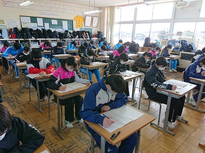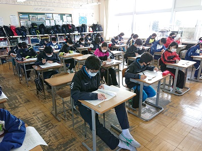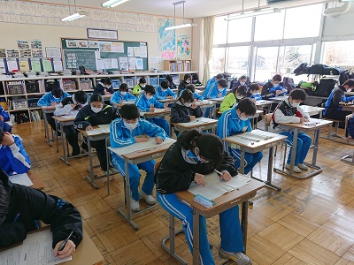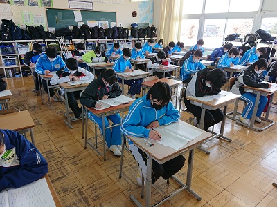 1・2年生は、中学校で実力テストを行いました。