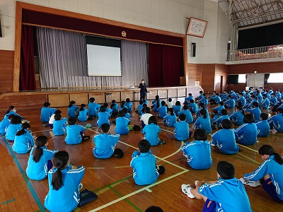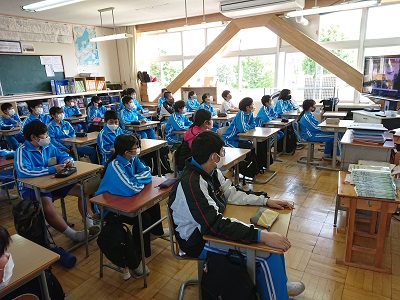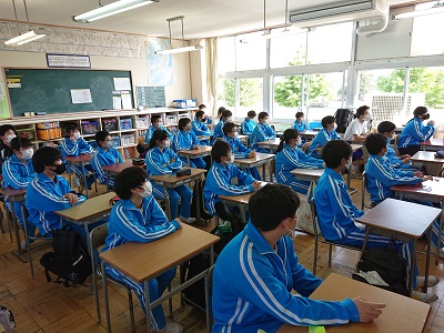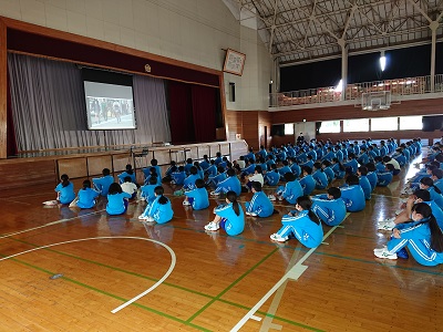体育館と教室(オンライン)とに分けて同時に行いました。