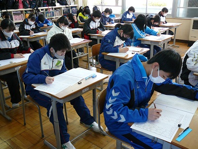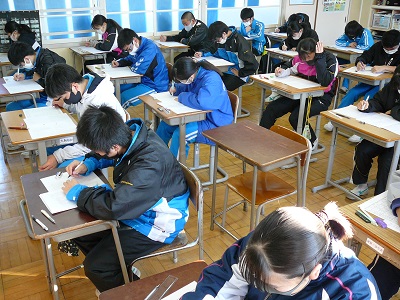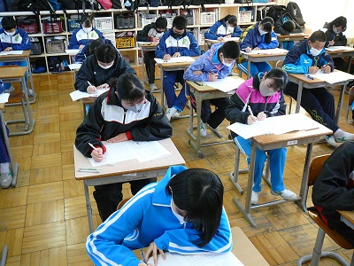 本日、3年生が中学校での最後のテストになる2学期の期末テストを実施しました。