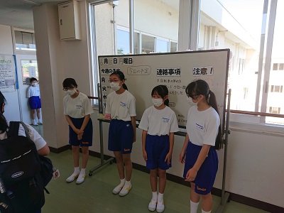 学校では、生徒会役員と生活委員の生徒によるあいさつ運動が行われました。