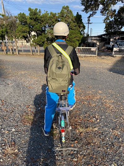 荷物を背負ってからタスキ掛け(斜め)し、周りの人や自動車の運転手の方に自分の存在を知ってもらいましょう。