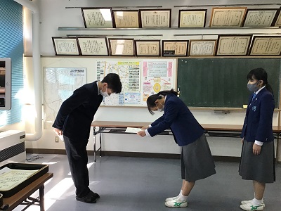 本日、卒業式予行の後、年度末の表彰式を行いました。