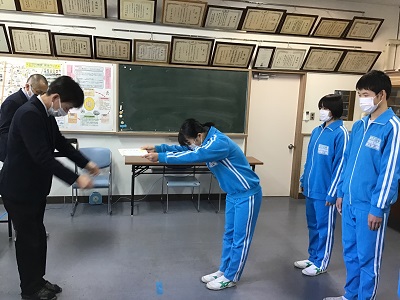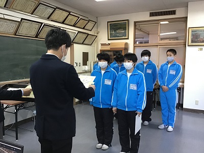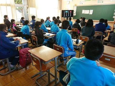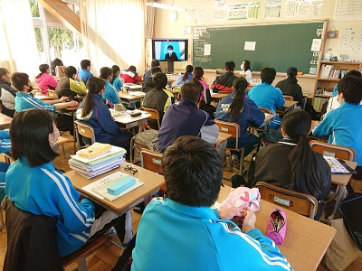 明日からの冬季休業前にオンラインによる表彰式、集会が行われました。
