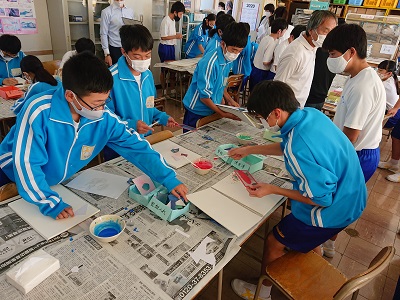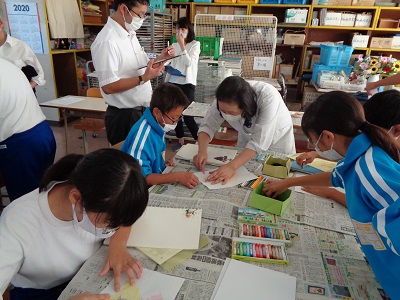 9月30日(水)の5時間目に、学力向上指導員派遣事業として1年3組で美術の研究授業を行いました。その後、研修を行いました。