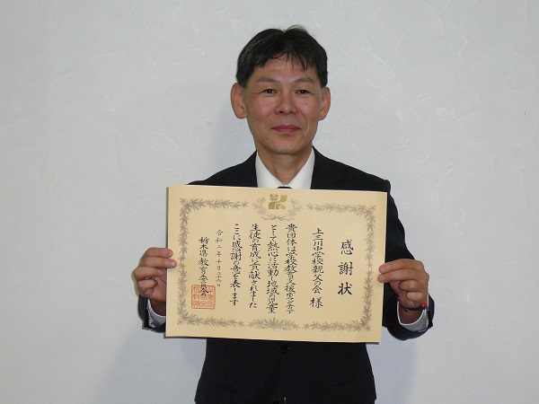 県内22団体が表彰されました。本校の親父の会も永年の様々な活動が認められ、栃木県教育委員会教育長より感謝状をいただきました。おめでとうございます。