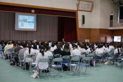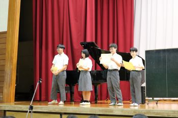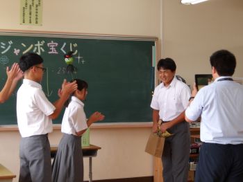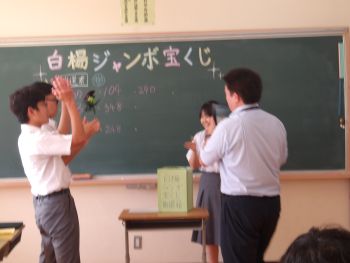 午後は、オンラインでの生徒の発表でした。その後、生徒会による白楊ジャンボ宝くじを行いました。