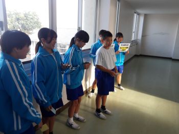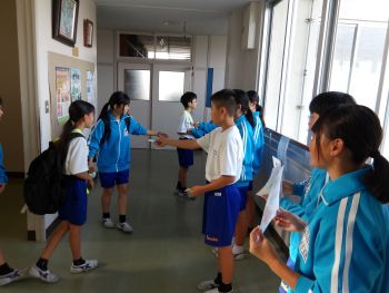学習委員会が放送で朝会を行いました。各教室で参考になる自主学習ノートの紹介もありました。
