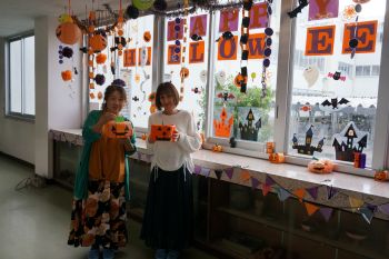 図書ボランティアの皆さんが昇降口をハロウィンバージョンに飾り付けしてくれました。いつもありがとうございます。