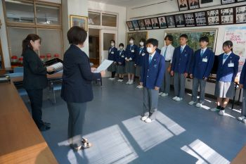 2学期の学級委員認証式を行いました。