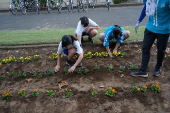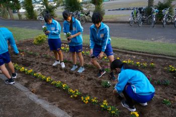 環境委員会の生徒たちが花壇に花の苗を植えてくれました。