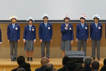 11月3日に上三川町  町政70周年記念式典がありました。その中で本町の中学生が未来の上三川に向けての発表を行いました。本校からは6名が参加しました。