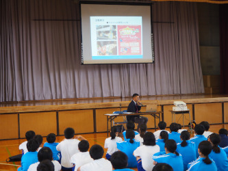 10月8日、1年生が外部から講師を招いて、食に関する講話を行いました。