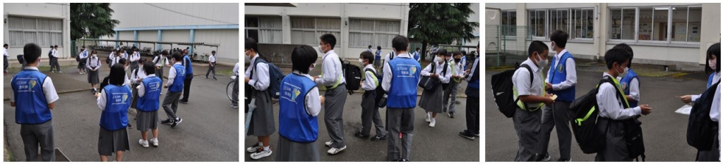 本日のあいさつ運動で、生徒会本部役員がマスクとビブスを着用しお披露目となりました。生徒会本部役員のチームワークがさらに強くなった感じがします。昇降口では、大きなあいさつが交わされていました。生徒のみなさん、ありがとうございました。
