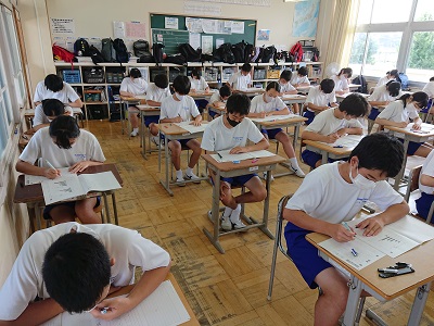 本日は、3年生が第2回実力テスト、2年生はとちぎっ子学力テストを行っています。