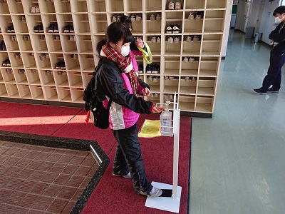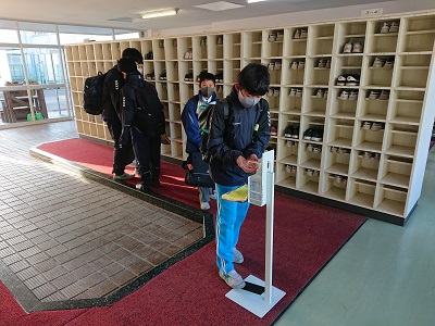 昨日、上三川中学校同窓会から足踏み式の消毒液スタンドが贈呈されました。