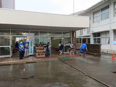 あいにくの雨でしたが、社会を明るくする運動の一環として保護司の方々が来校され、運動を盛り上げてくださいました。ありがとうございました。