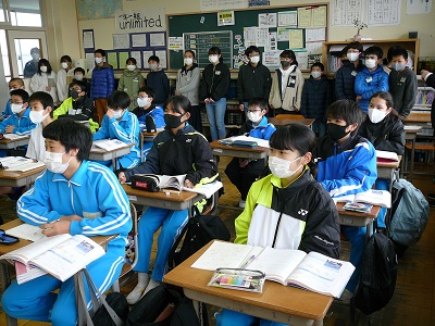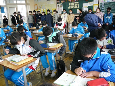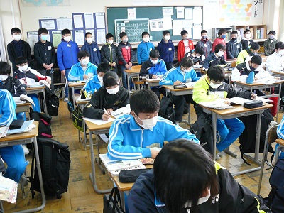 本日は、上三川小学校の6年生が中学校に来校し、授業の様子をみたり、先輩方の話を聞きました。