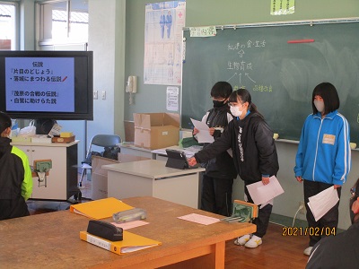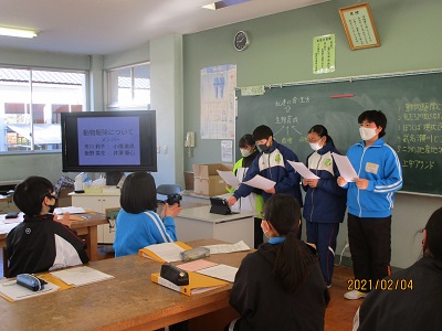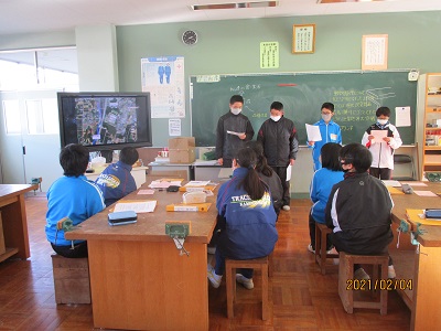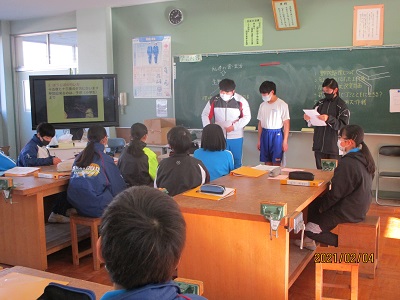 総合的な学習の時間にグループで研究した内容の発表会を、2月4日(木)に行いました。どのグループも、工夫を凝らした発表を行いました。