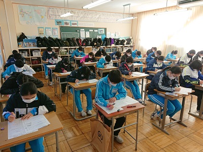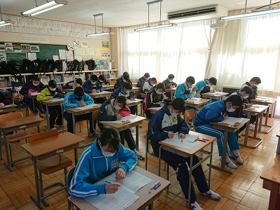 本日、3年生が中学校生活最後のテストになる、期末テストを行いました。
