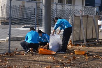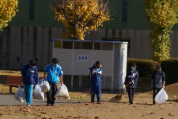 1学年が総合的な学習の時間に地域貢献活動の一環として、学校付近の道路や近くの公園の落ち葉掃きやゴミ拾いを行いました。