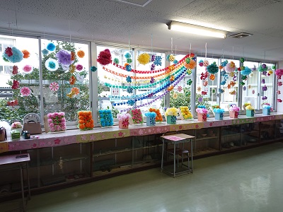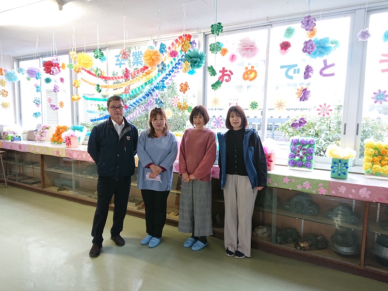 本日、図書ボランティアの方々が卒業に向けた昇降口の飾り付けを行ってくださいました。