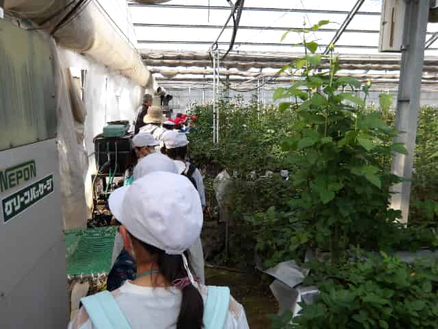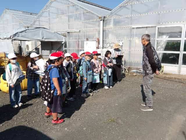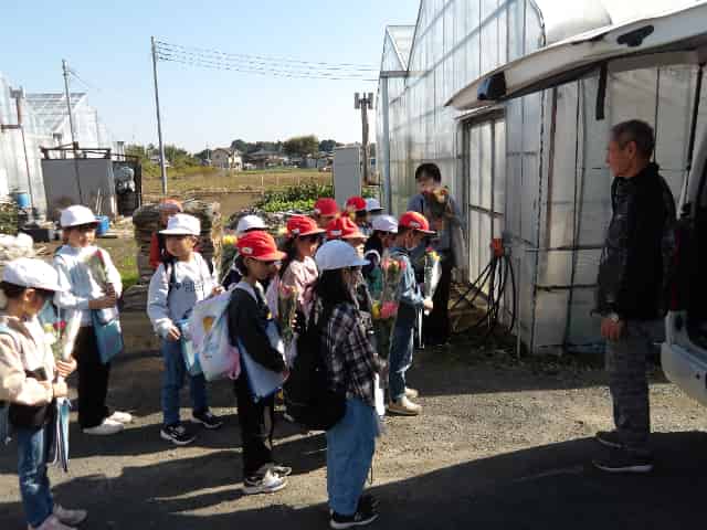 斉藤バラ園様では、ハウス内で育てられているバラを実際に見学させていただきました。児童たちは、育てているバラの種類や出荷先などについてたくさんの質問をし、丁寧にご説明いただきました。