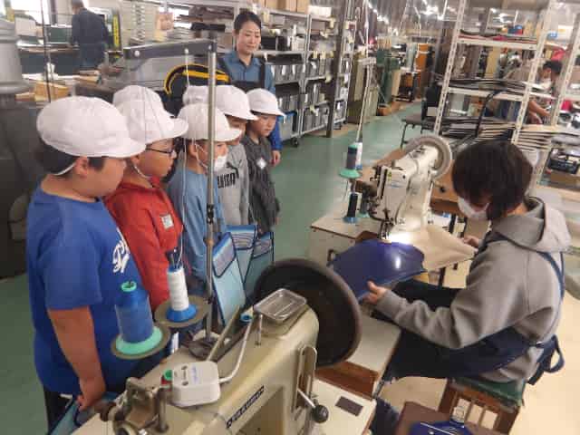 大峡製鞄様では、ランドセルの製造工程を見学したり、簡単な工作体験をさせていただいたりしました。職人の皆様の高い技術や、ランドセルが一つひとつ丁寧に組み上げられていく様子を間近で見せていただき、児童たちは大きな感動を覚えていました。