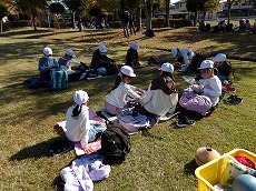 生活科の学習の一環として、「みずほの自然の森公園」へ校外学習に出かけました。秋の自然にふれながら、落ち葉や木の実(どんぐり・松ぼっくりなど)の採集を行いました。