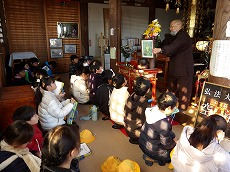 4年生が1月13日に校外学習で、満願寺に行きました。4年生は、社会科の「郷土の伝統・文化と先人たち」の学習で、町内の史跡や文化財について学んでいます。