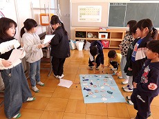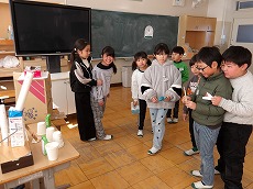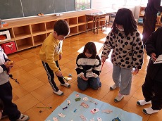 本日2校時に、2年生が生活科で「おもちゃまつり」を行いました。様々な工夫をして「魚つり」「ゴムてっぽう」「わりばししゃてき」「てっぽうくじ」などのお店を準備して、1年生を招いて実施しました。2年生が1年生に、やり方を丁寧に説明したり優しく手助けしたりする姿が見られました。1年生は、笑顔でとても楽しそうでした。