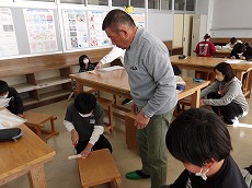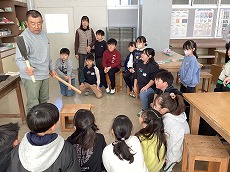 昨日、のこぎりの使い方の指導に、昨年度もお世話になった大工さんがボランティアとして来校されました。3,4年生は、図工の作品作りでのこぎりを使う単元があります。