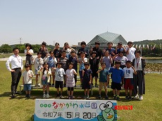 なかがわ水遊園に到着後、学年ごとに写真撮影をしました。