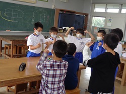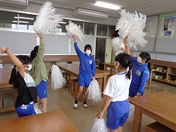 今日も昼休みに、紅組・白組に分かれて、キャラクターを考えたり、応援の動きを考えたりと、みんなで協力して自分たちの応援を作り上げていました。