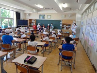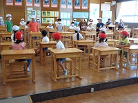 全校児童が6つの班にが分かれて、各教室に集合