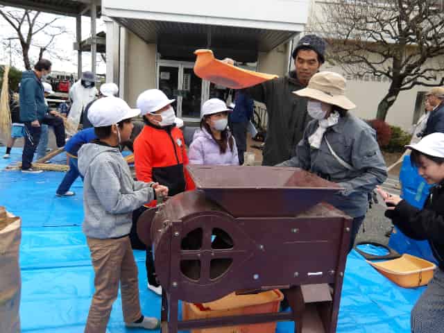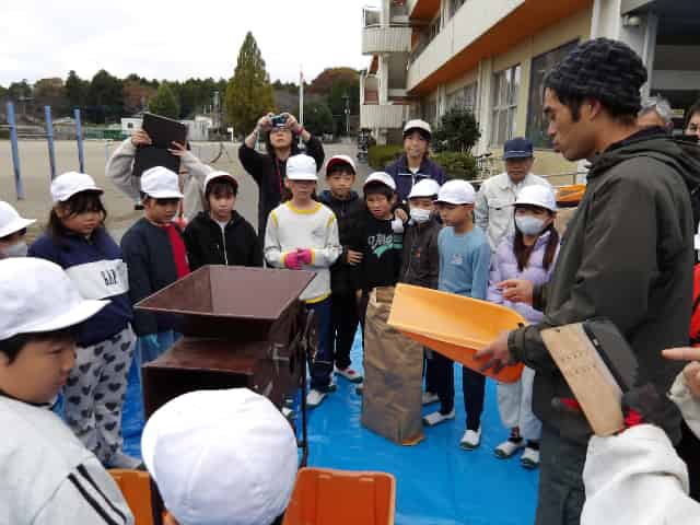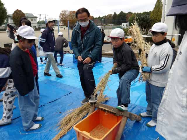 3年生は総合的な学習の時間に、明治里山プロジェクトの皆さんのご協力のもと、脱穀・もみすり・精米の体験活動を行いました。
