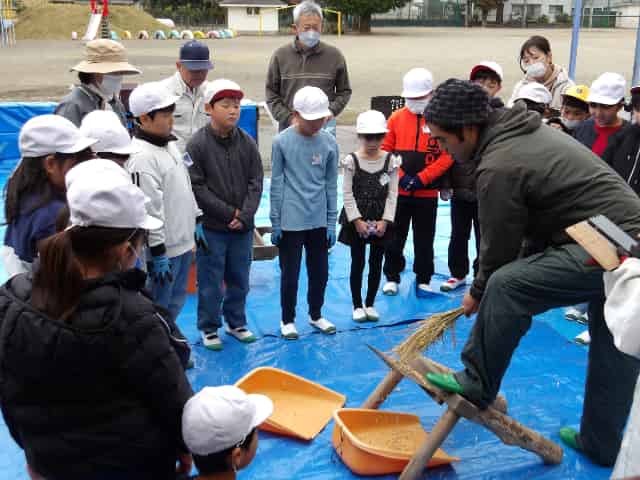 児童たちは、実際に手を動かしながら、昔の人の知恵や工夫、米づくりの大変さを実感していました。